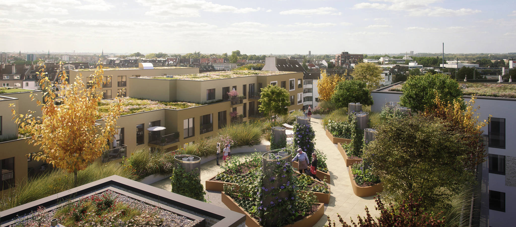 DU! – Dachgarten Unterbilk offeriert Ihnen neue Möglichkeiten: Zusätzlich zu den privaten Terrassen, Loggien, Balkonen und Dachterrassen, die den Freiraum der Wohnungen nach draußen erweitern, wird ein gemeinschaftlicher Dachgarten bzw. Dachterrasse geschaffen.